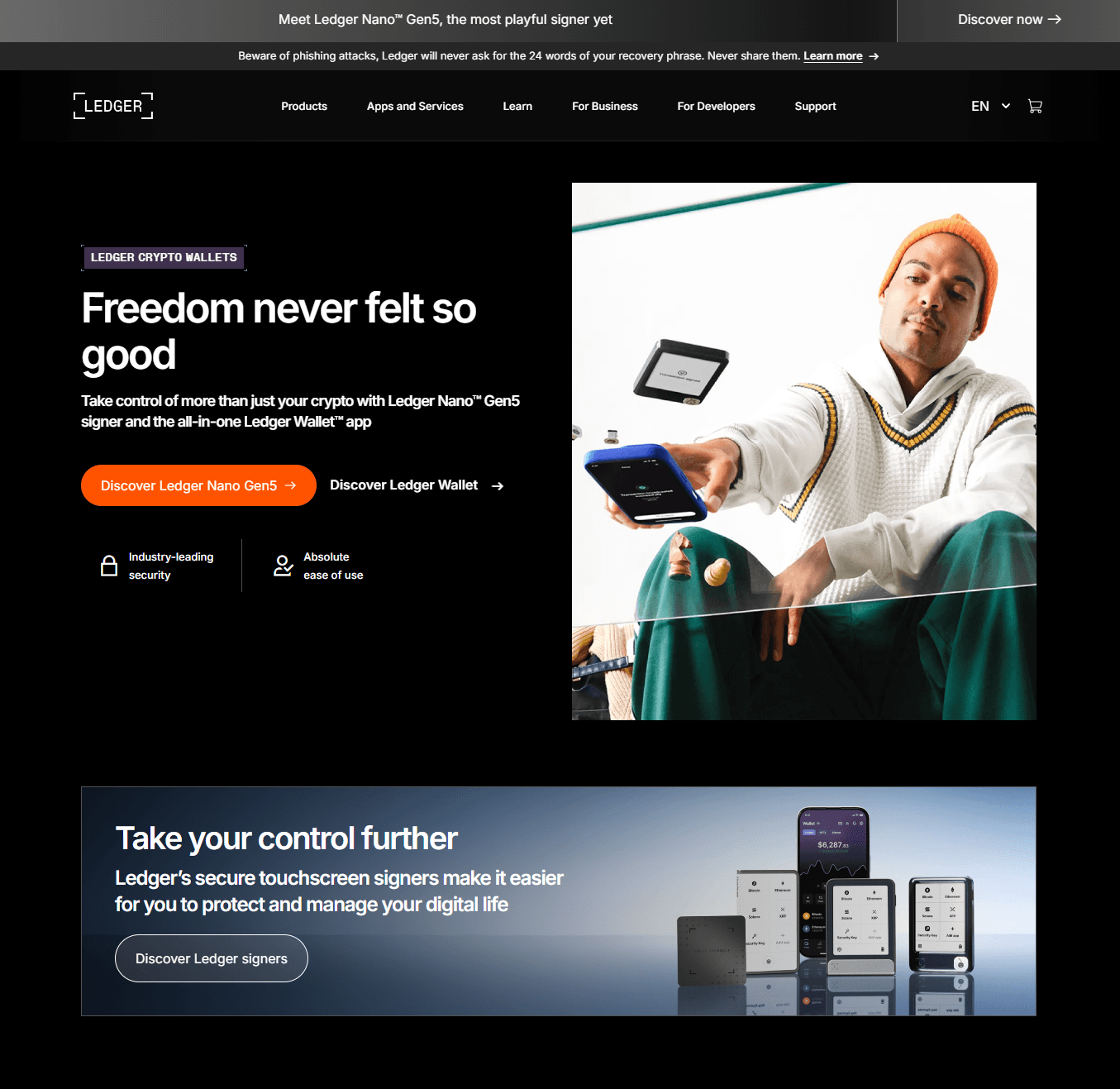 With industry-leading hardware security, continuous firmware updates, and a user-friendly interface, Ledger™ Login provides a safe environment to interact with Web3, DeFi platforms, and third-party apps. Stay protected, stay in control, and manage your digital wealth the right way—through the official and secure Ledger ecosystem.